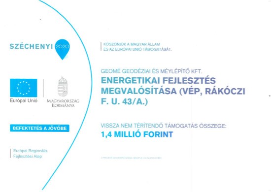 Vissza nem térítendő európai uniós forrás segítségével energetikai fejlesztés megvalósítására került sor a GEOMÉ Geodéziai és Mélyépítő Kft. vépi telephelyén, a GINOP-4.1.3-19-2020-01831 pályázat keretén belül.